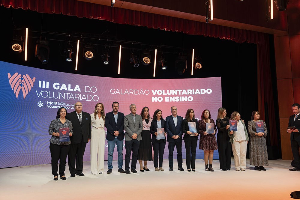 Durante a cerimónia, foi entregado o prestigiado Galardão Voluntariado no Ensino, atribuído a instituições de ensino que se evidenciam pelo envolvimento ativo dos alunos em projetos de cidadania. O reconhecimento contempla três categorias com bandeiras de mérito, e a instituição com o maior impacto recebe ainda um prémio monetário de 1.000 €, destinado a reforçar futuras iniciativas voluntárias.